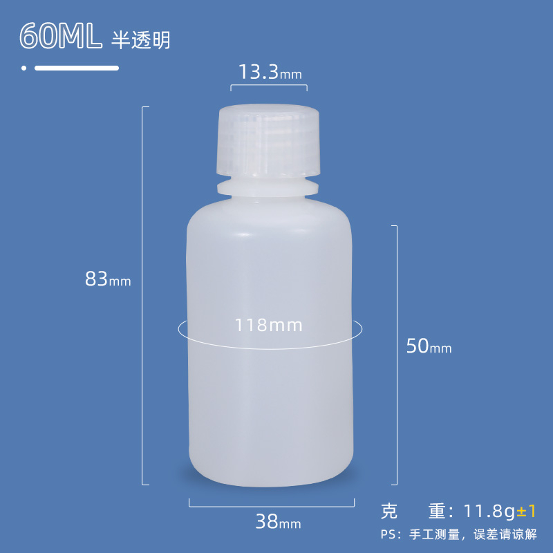 Sie sind hier: Heim » Stapelbarer Jerry Can » Plastikflasche » Plastik chemische Flasche » 60 ml Kunststoff-HDPE-Flasche für chemische Flüssigkeiten